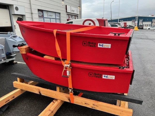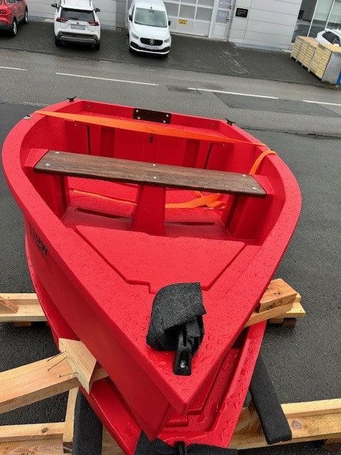 Lítill og flottur árabátur sem hentar vel á vatnið, hægt er að setja á hann lítinn utanborðsmótor 4HP