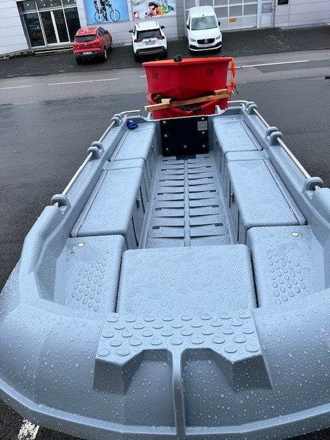 Kontra 400 is a modern multi-purpose polyethylene boat intended for recreation and rescue. The unique structure of the hull ensures stability and maneuverability. Thanks to its double-shell structure it is safe and the boat made of polyethylene ensures durability.