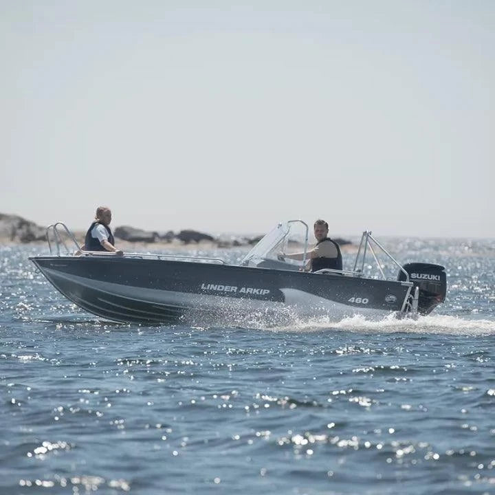 Út á landi, innan við ströndina eða heima við bryggjuna eða í vatninu. Með 12° skrokkhalla er þetta léttplanandi fjölskyldubátur sem rúmar allt að 5 manns. Eins og nafnið gefur til kynna er hann 460 cm langur og rausnarleg 185 cm breidd veitir rúmgóða mótorbátsupplifun.