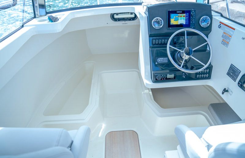 Nýttu meiri tíma með línurnar þínar í vatninu með glænýja 625 Pilothouse. Báturinn er vandlega hannaður til að hámarka hvert einasta pláss á þilfari, ásamt vel útbúnu lokuðu klefa og getur því auðvelt að leggjast við ból og hvílt sig. Vertu sneggri að veiðistöðunum þínum með 150 hestafla Mercury utanborðsvél og veldu úr búnaðarpökkum Quicksilver fyrir öryggi, véllíðan og þægindi i hverri ferð. Báturinn er með innbygðar lestir fyrir aflan sem einnig er hægt að nýta sem kæli eða blóðugunar. Góður pallur að aftan þar sem auðvelt er að stínga sér til sunds eða köfunar.