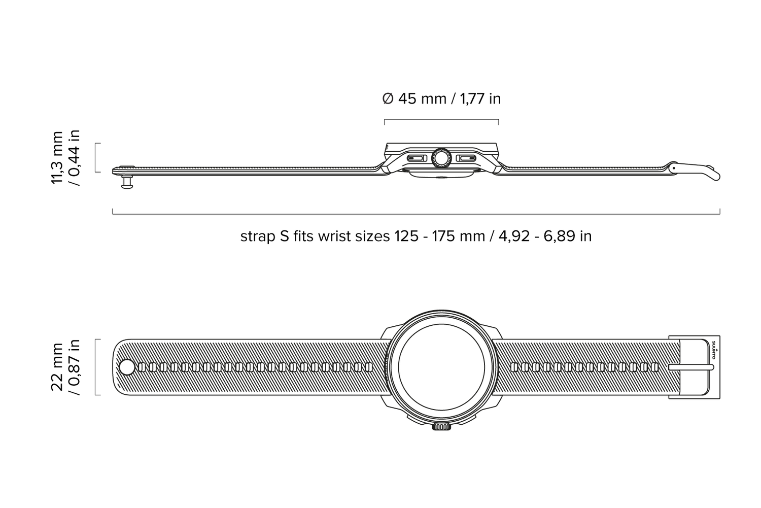 Wrist sizes: 125-175 mm (accessory strap -215 mm)